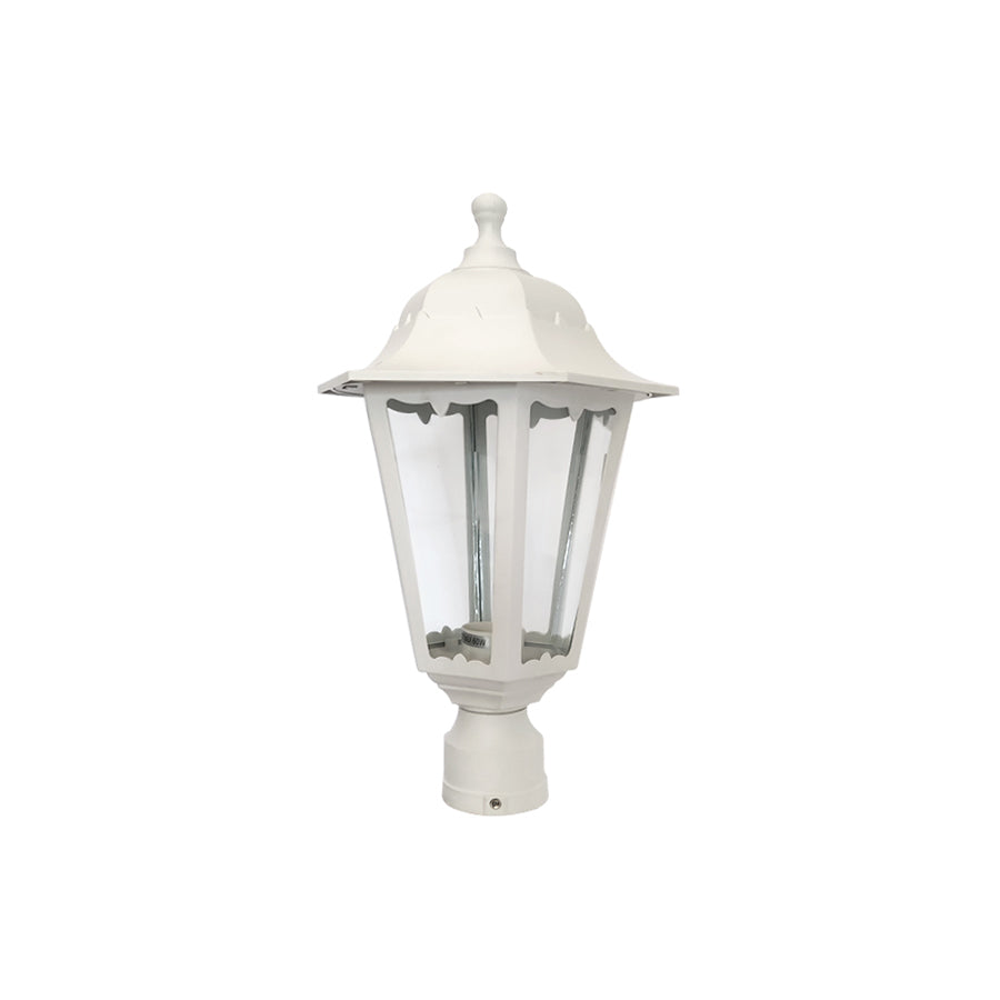 Lanterna esagonale con attacco per palo Lanterna per esterno Diffusore in vetro trasparente Struttura in polipropilene Alimentazione 220-240V~ Attacco E27 Potenza 60W max IP 44