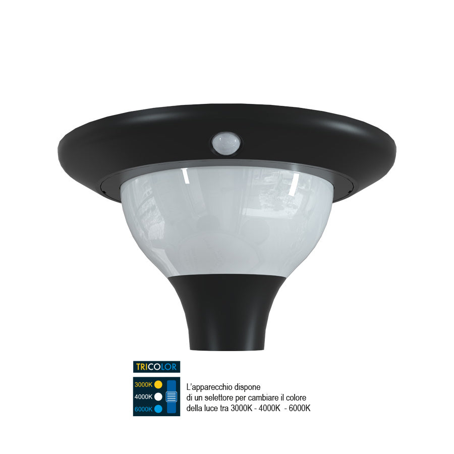 Carmen – Lampione Led ad energia solare – con sensore di movimento – montaggio a palo Ø60 – Tecnologia Tricolor -15W (401143X)