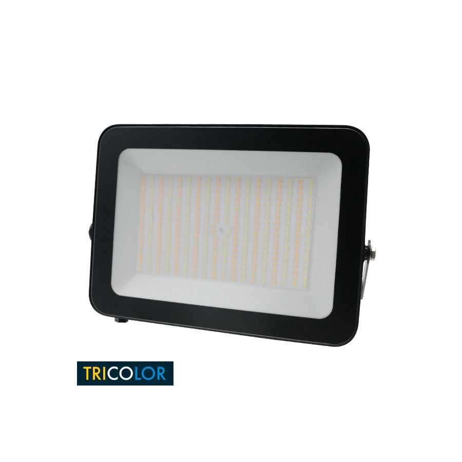 Proiettore stagno a led Tecnologia Tricolor (3000K – 4000K – 6500K) Corpo in alluminio pressofuso Vetro temperato Antiriflesso Valvola Anticondensa Alimentazione 185-265V~ Potenza 150W Lumen 13500 IP 65