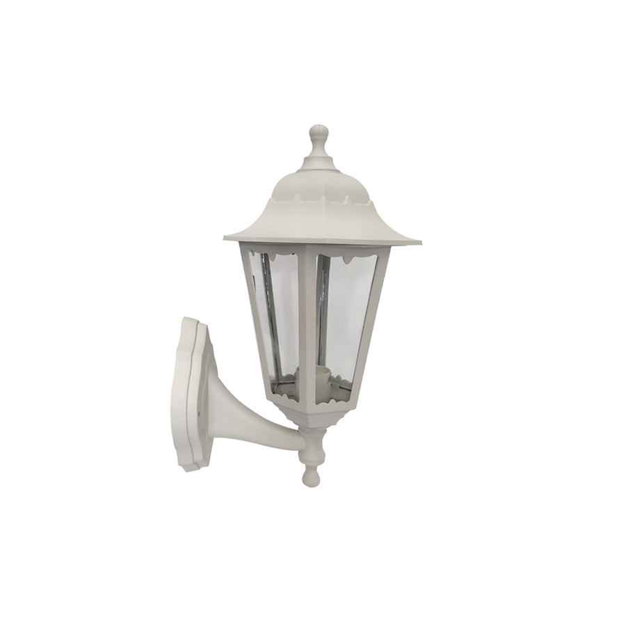 Lanterna esagonale con braccio reversibile a scelta sia a sospensione che a sostegno. Diffusore in vetro trasparente Struttura in polipropilene inattaccabile dagli agenti atmosferici Alimentazione 220-240V~ Attacco E27 Potenza 100W max IP 44